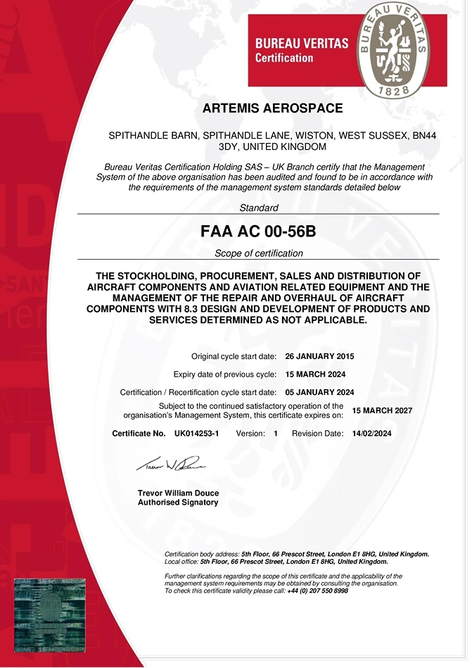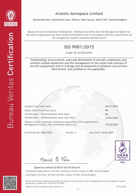 Artemis Aerospace is recognised and certified by the following international standards of excellence: